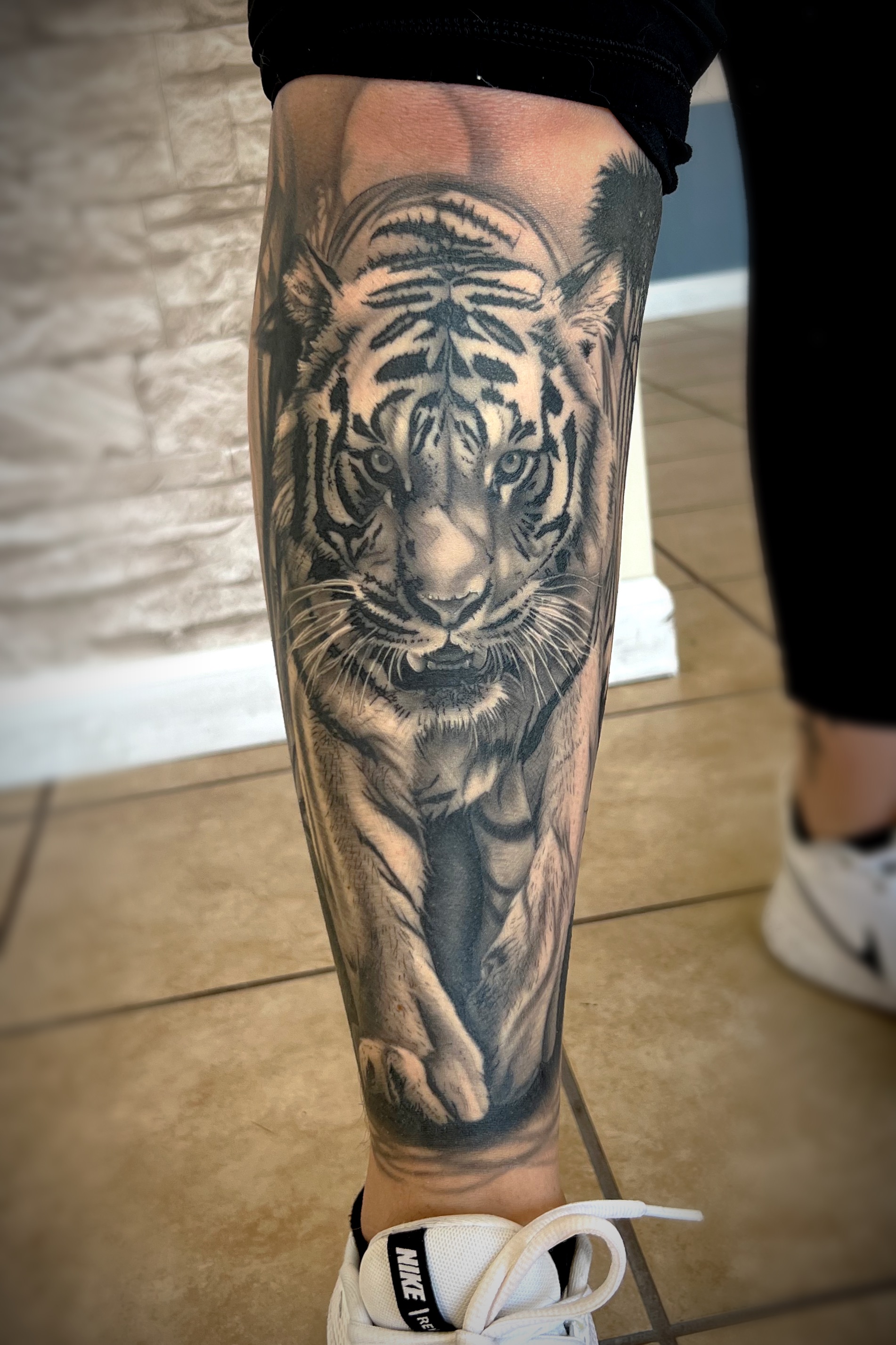 My portfolio is built on technical precision. I specialize in realism tattoo work, ranging from detailed portrait tattoos of family members or pop culture icons to complex wildlife and nature scenes. I do not use pre-made flash designs. Every piece I do is custom designed for the client.